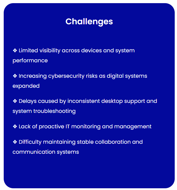 As the organisation continued to expand its operations, dependable technology became essential for managing communication, operational coordination, and administration.